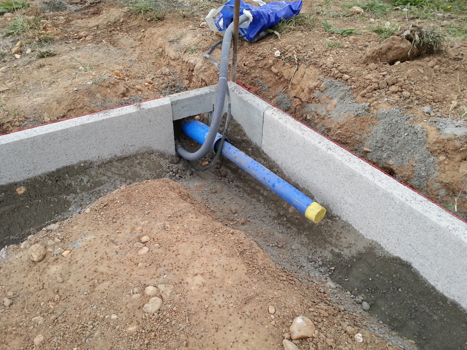 Wie die ersten paar Meter, wurde auch der Rest der Wasserleitung in Schutzrohr verlegt. Die Leitung wurde in Sand gebettet, die Kabel in Panzerrohr darübergelegt uns das ganze mit Frostschutzkies aufgefüllt.